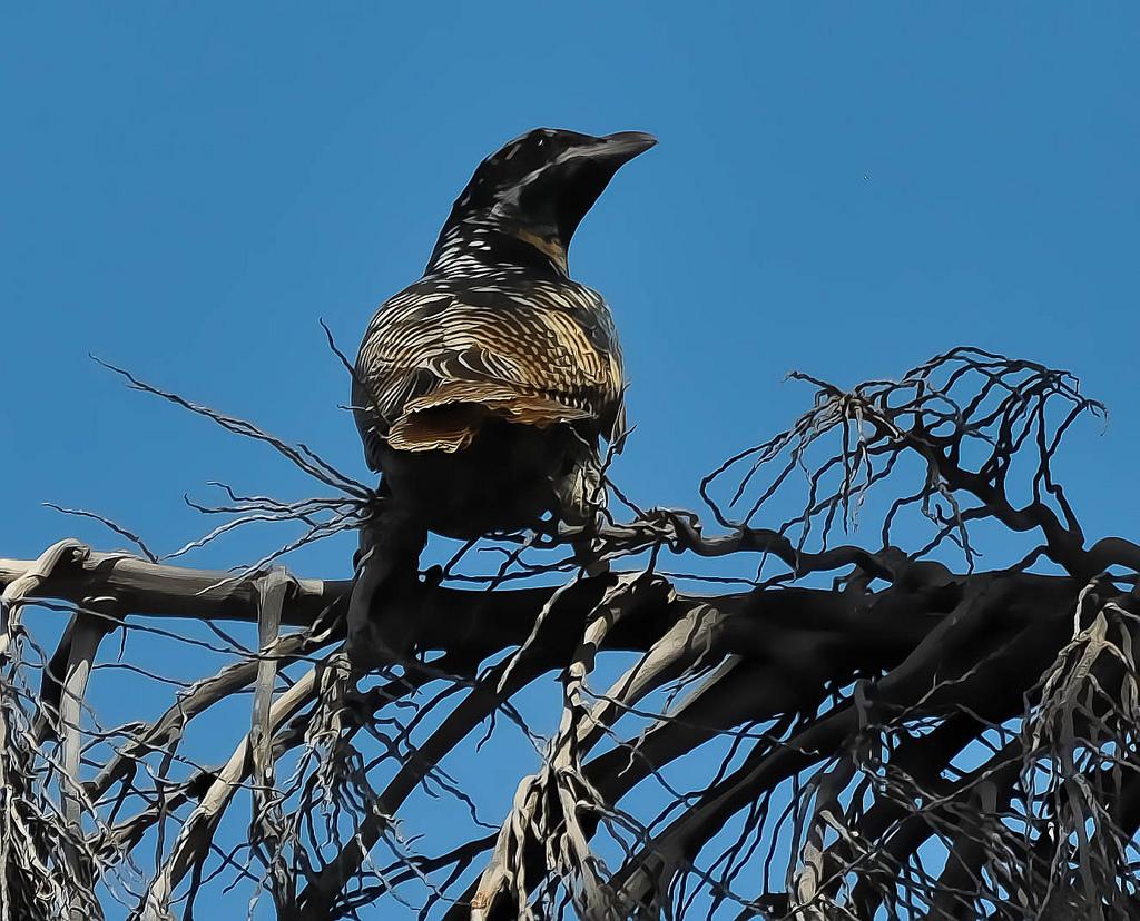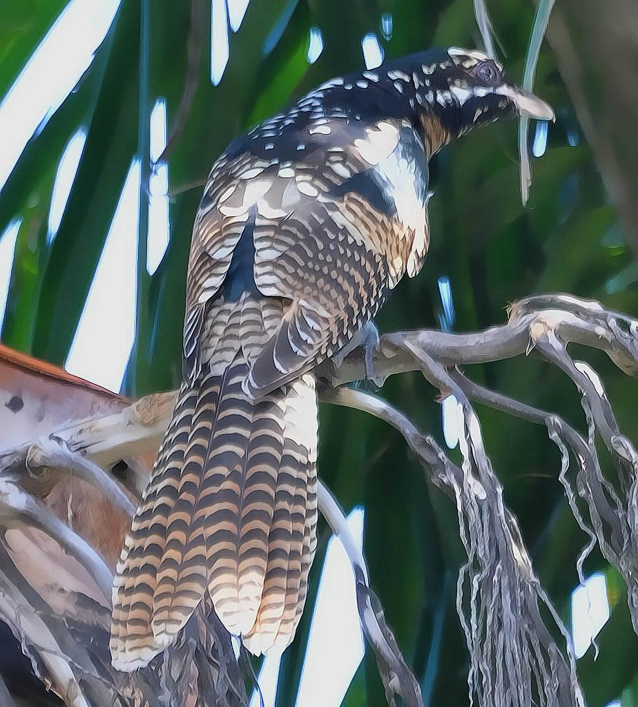 I reckon you are close with the cookoo theme. My old Australian bird book seems to indicate a Common Koel, which is a large parasitic cuckoo common in coastal QLD.
