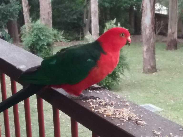 Our friendly King Parrot - been hanging around for about three months now, usually only stays a week or so. Apologies for photo quality - taken with Samsung Tablet.