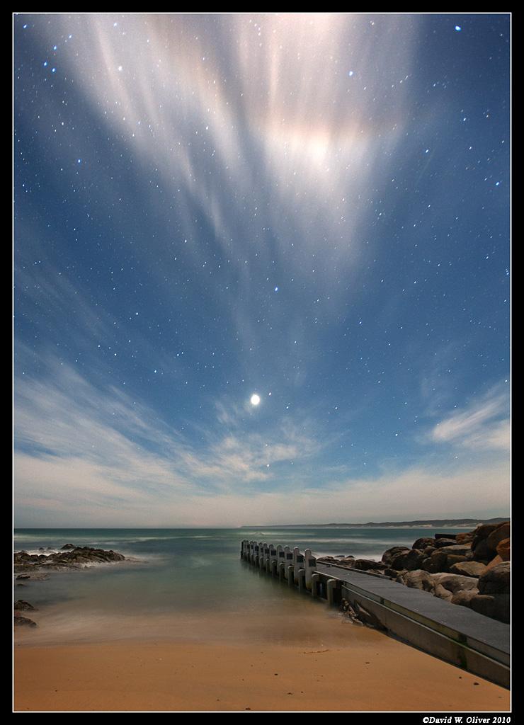 Here's another. Minus Discovery this time. Salmon Rocks looking south with possible oil/gas platforms over the horizon. No photoshop magic (other and curves, levels, saturation etc.) with this one, single image shot under moonlight (half moon), 30 sec exposure, f2.8, Iso1600 @17mm