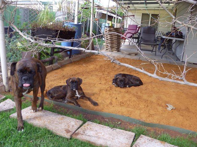 You'd think with all that lawn out the back, the pups would play out on that - but no - they have decided that where I'm working is their new sand pit to dig up and rest area.