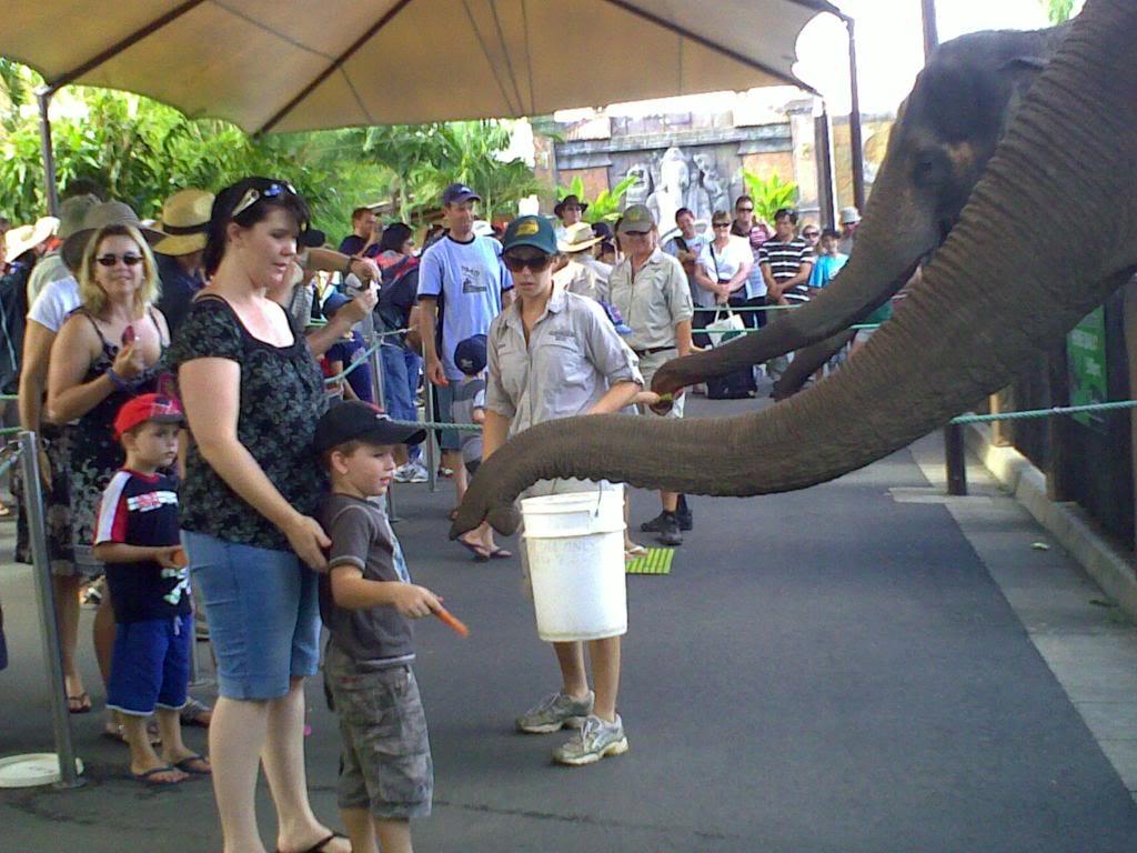 The missus and 2nd youngest feeding an elephant at Aust Zoo