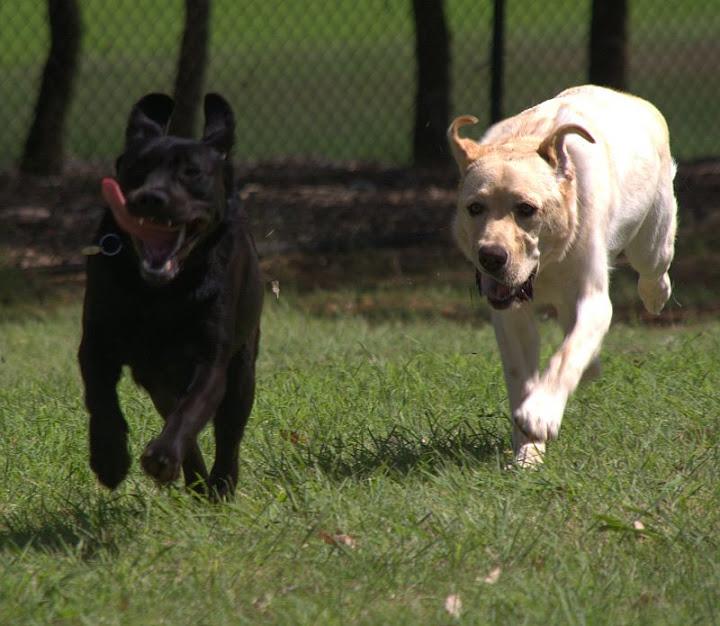 After Reni's (our guide dog pup) leg operations we've finally been allowed to take her out for run. Here she (black lab) is with another guide dog pup.