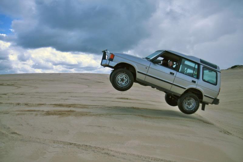 well not really, beceause of the shape of the dune it doesnt really take much speed, someone probobly has video this jump? the biggest danger here is damaging the truck, we had the driven up and down the dune several times and knew what to expext leading up to the this and have had plenty of experience on the dunes, i think theres probobly more risk to kids taking them offroad in the bush on harder tracks or leavin them in or near the cars during recoverys...