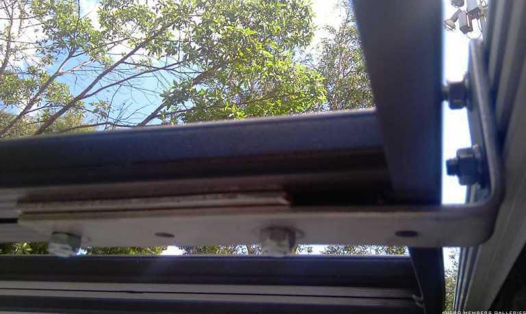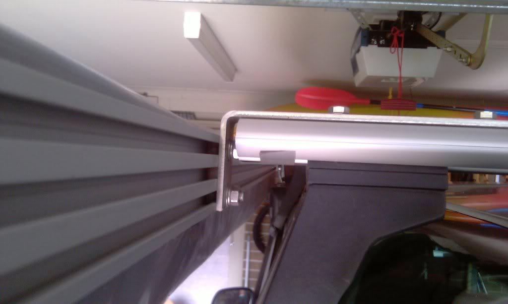 This is how I mounted my wing on the cross bars. What's good with the way you mounted yours is that if the nuts did work themselves loose, they would not be able to drop off and thereby also prevent the awning from falling off. Should not happen, but our corrugated tracks have destroyed & loosened many things!