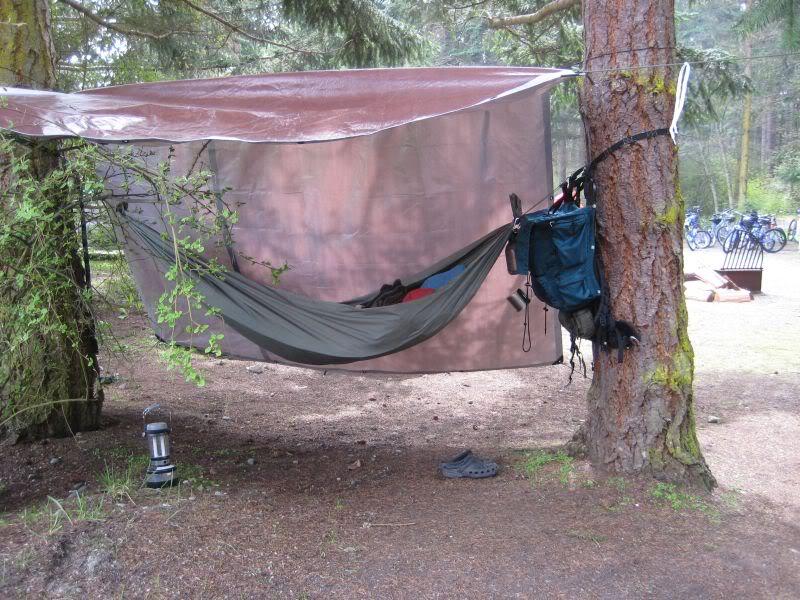 Trees were way too close together, and quite huge! But it worked well. Perfectly comfortable down to a light frost the first night and 5*C the second night.