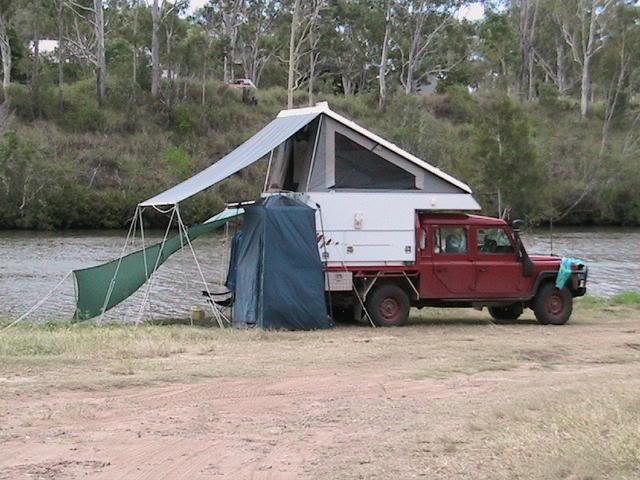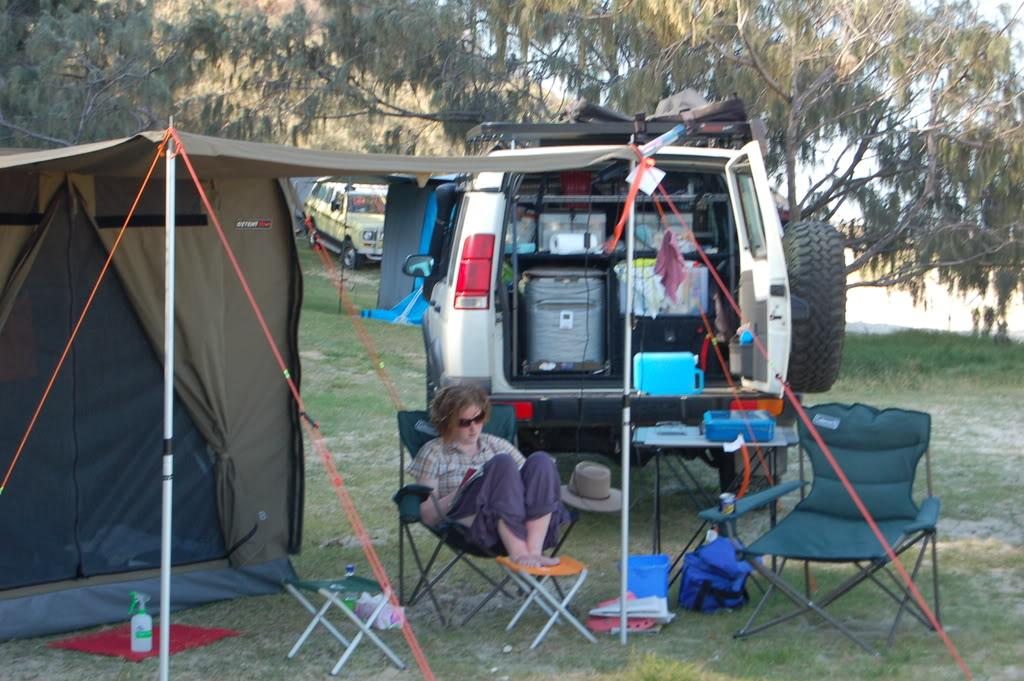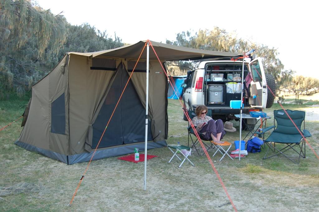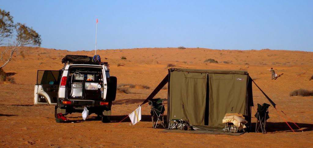 we tend to be pretty minimalist. We just use two bushwalking tents. we do have a mozzie dome for beating the daytime flies when required but everything else is in the car (which is off stage left)![]()