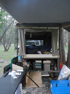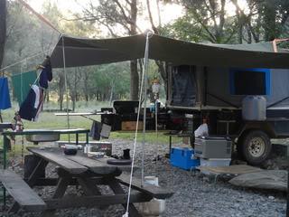 Posted some pics a few months back of our camper but didn't have any pics of what it is like set up. Remembered to take some over Christmas/New Years this year. This is on Day 8 of the stay so is very settled in aka messy. It took nearly 30 mins to set up camp as is before we had the rods out to get some Bass.