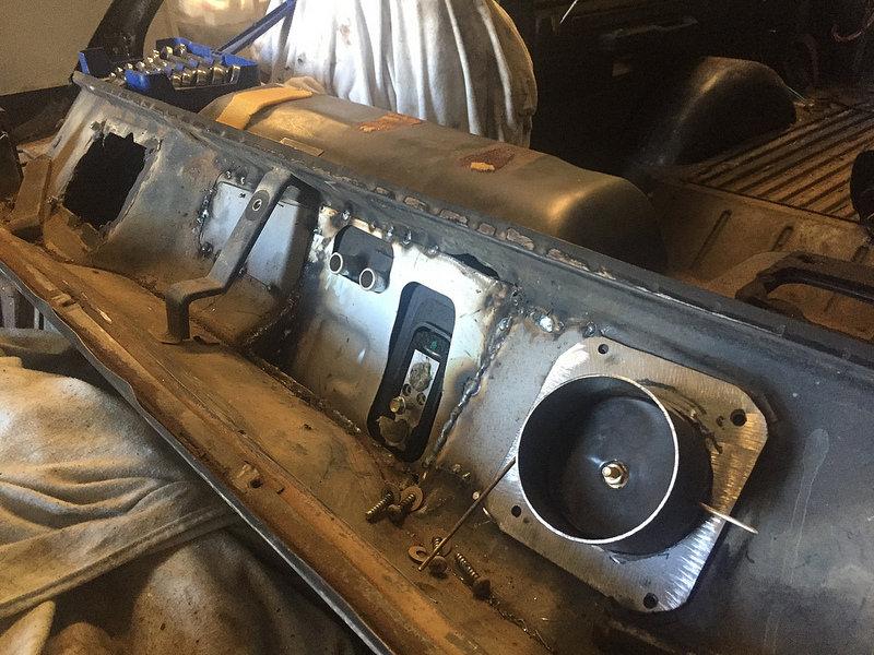 I noticed some cracking in the corners of the dash panel (the steel sheet that holds the whole dash together). So I decided to laminate this area to give it a bit more strength: