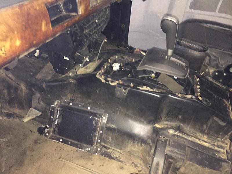 Finally, I was also able to fit the Colorado auto gear selector. For this, I had to make a purpose built box, recessed into the tunnel as the Colorado selector would be way too high if just fitted to the top of the tunnel. I also had to make some minor modification to the auto selector cable bracket on the gearbox, to make sure that the cable angles are not too extreme. I made an inspection plate on the side of the tunnel to allow me to work on the auto cable more easily if required. The only problem now is, that due to the size of the auto shifter, there is no way I can fit a high/low/CDL shifter where it would normally go, so I'm considering using IP67 rated electric actuators bolted straight to the LT230, but I will do that when I have lifted the body off for easier access.