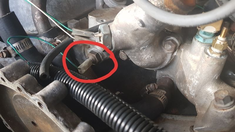 I can see the fan sensor, the injection sensor, the fuel rail sensor (injection). Where the hell has the dash gauge gone? Maybe on this motor its hidden behidn the alternator mount?
