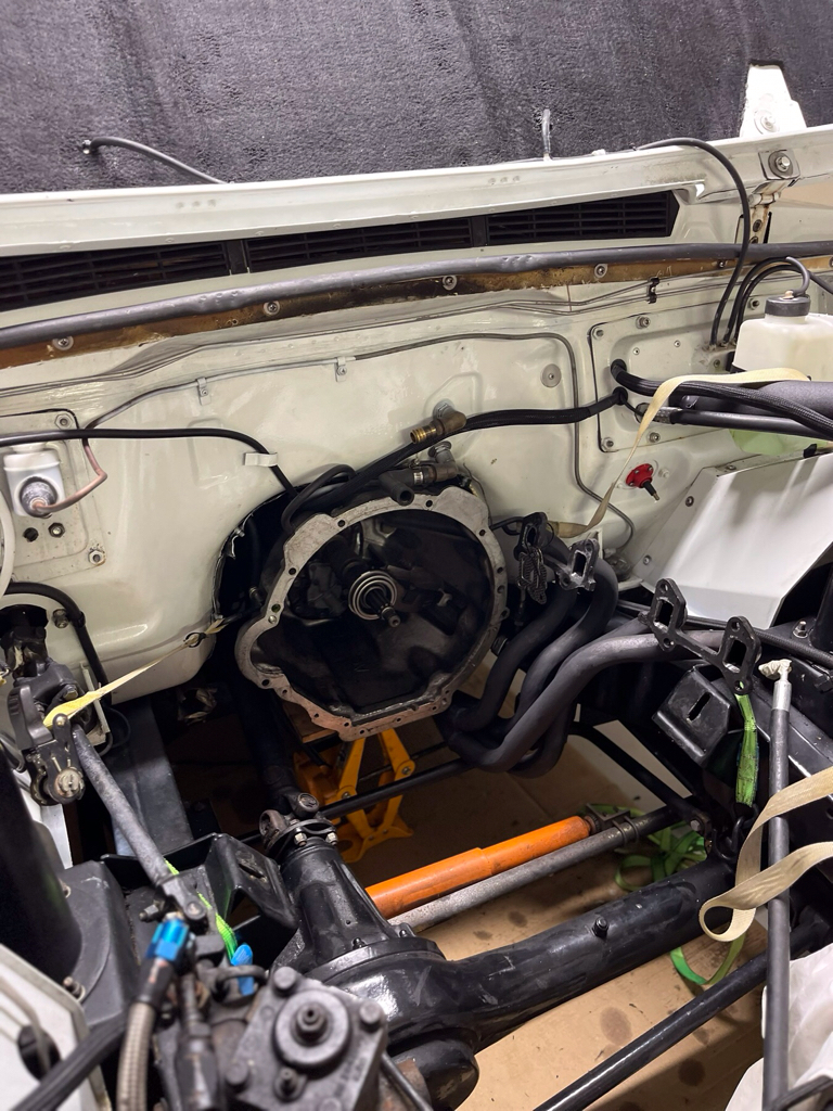 Then fitted it into white truck got four bell housing bolts in so its secure. Will fit engine mounts once all bell housing bolts are in.