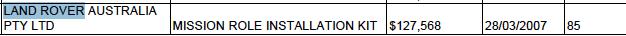 Just a few ( theres a lot more ) of costings for Perentie spares.