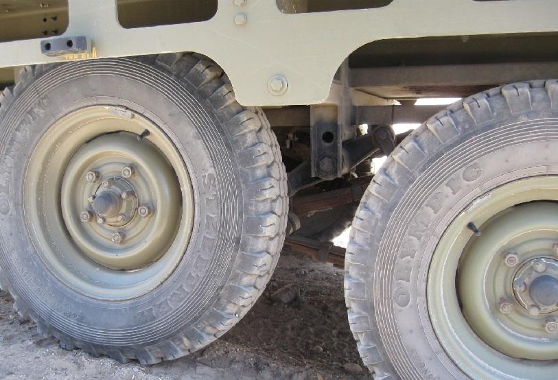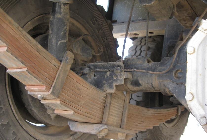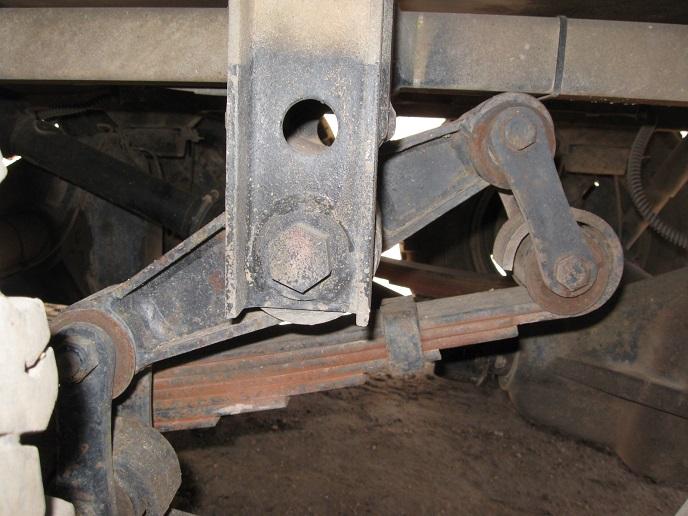 Team, The suspension does look tired, particularly the position of the shackle bushing washers. These look off centre. Have you had a look to see if your rear suspension bushes are warn? Also Gunner is right (must be a spanner) in that the axle restraint straps (the steel wires which are looped around the axle and fastened to the chassis) are there to limit articulation droop and protect the universal joints and dampers. As Gunner stated check these have not been stretched. Have you tried jacking the intermediate axle up to its limit while the vehicle is on a flat level surface (out of gear, front wheels chocked) with the rear axle free to hang? this may give you an unbiased view of how the suspension should be working. The read assembly is load sharing and should not allow the load beam to touch the chassis under normal circumstances. Having driven these a lot, they are awesome off road, and although a truck and not a rally car, they will go pretty much anywhere. Have driven across parts of the Hamersley Range in WA in a fully laded (5.6 tons) six wheeler with absolutely no problems what so ever.