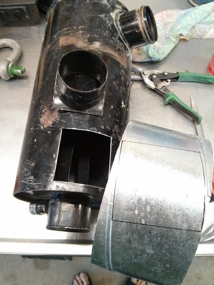 I cut out the original intake on the air cleaner and siliconed and riveted a blank over it made of left over tin ducting.