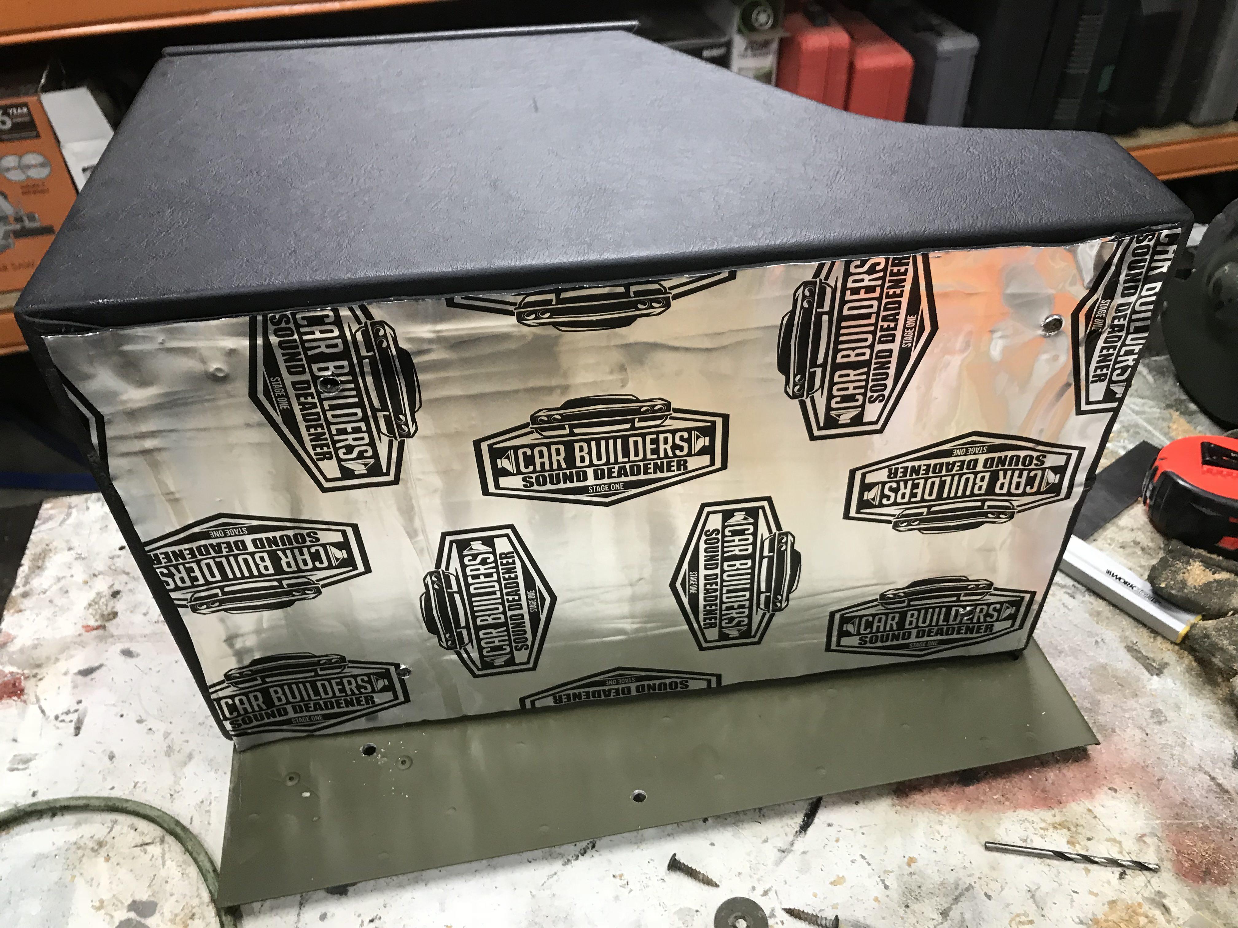 Installed some spare sound deadening material on the bottom of the cubby box: