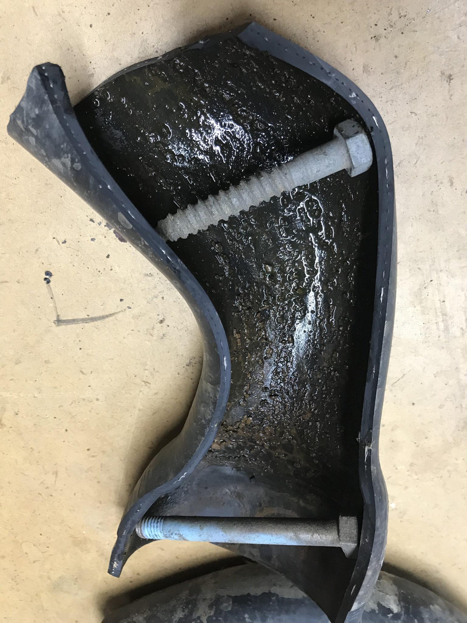 The inside of the hose has a combination of dirt, rust scale and broken down rubber from the inside of the hose.