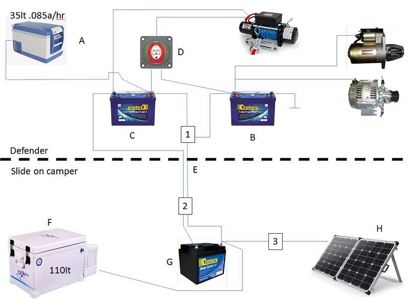 2- Do I need a unit here to manage discharge between aux batteries? I'm not sure what would work. It needs to receive charge from the vehicle batteries when the engine is running, then ensure the camper battery is isolated when camping. Maybe a simple HD relay would be best.
