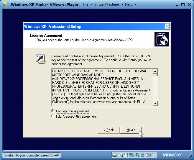 Import Windows XP Mode into VMware (-> File -> Import Windows XP Mode VM):
