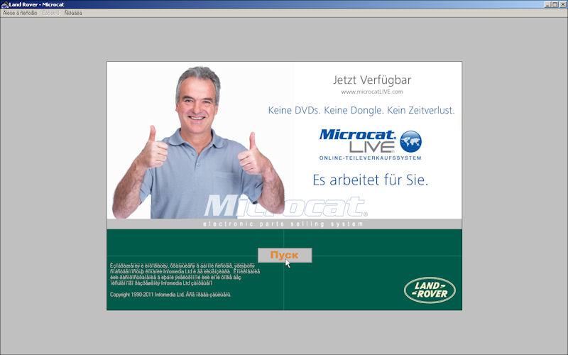 As of late 2011 new releases of Land Rover Microcat default to Russian after installation, even if English is selected as the language of choice prior to installing the software. Thus on running Microcat for the 1st time the following screen comes up: