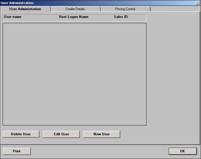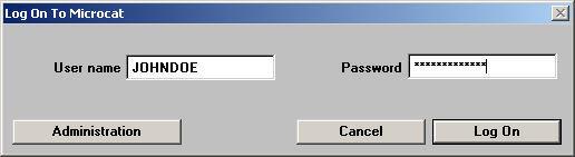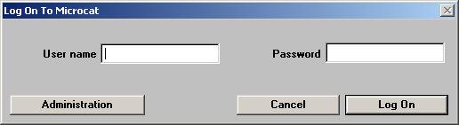 By hitting on the Start button the Log On screen pops up, for first time installations a new user needs to be created by hitting the Administration button (else just log on regularly):