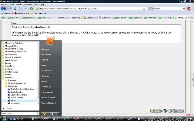 Of course the big bonus is the wireless radar that I think is a Toshiba thing. Little radar screen comes up on the desktop showing all the local wireless AP's. Very WWII.