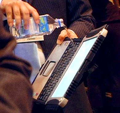 Panasonic Toughbook CF-18, just superseded by the CF-19. Worth $6,500 new, can pick one up for around $1,000. Touch screen, titanium alloy body, long battery life - no cooling fans, as it dissipates heat through the body. No internal CD drive though, as it's compact and folds back to be a tablet. Nowadays it's all USB drives anyway. In built wireless too.