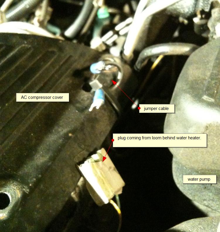 why is that there?, just 2 wires joined together, cable tied to the AC compressor cover.