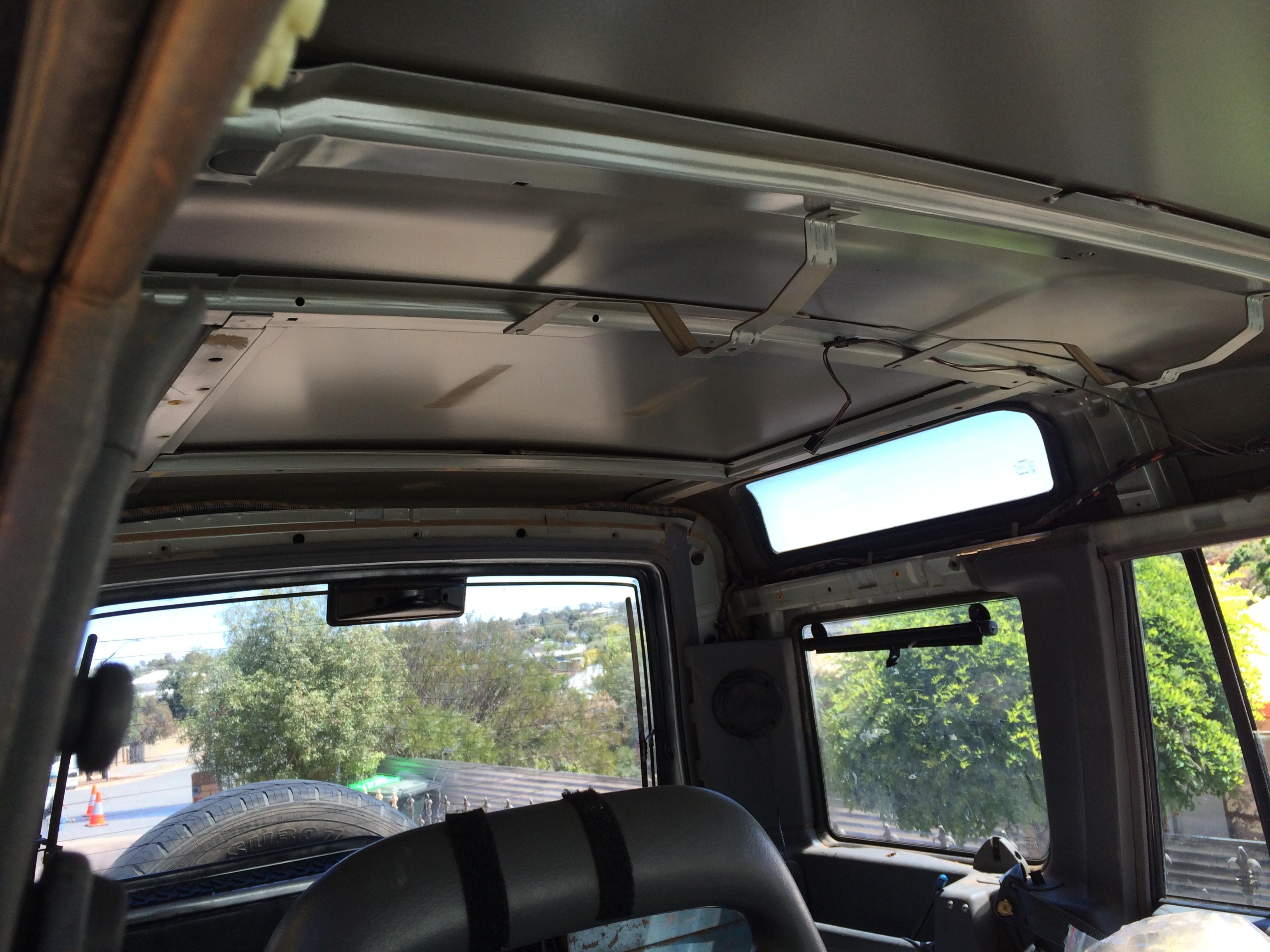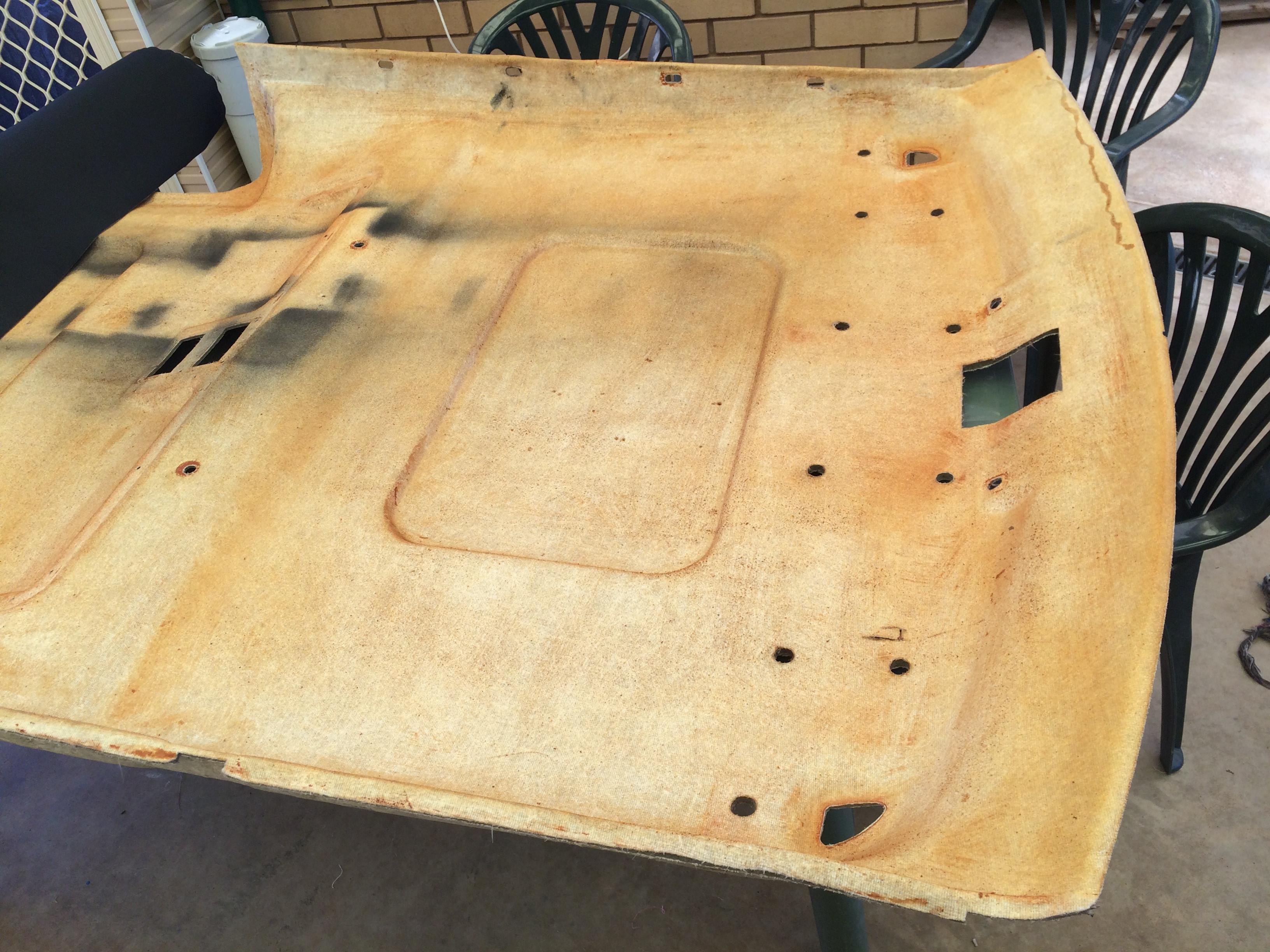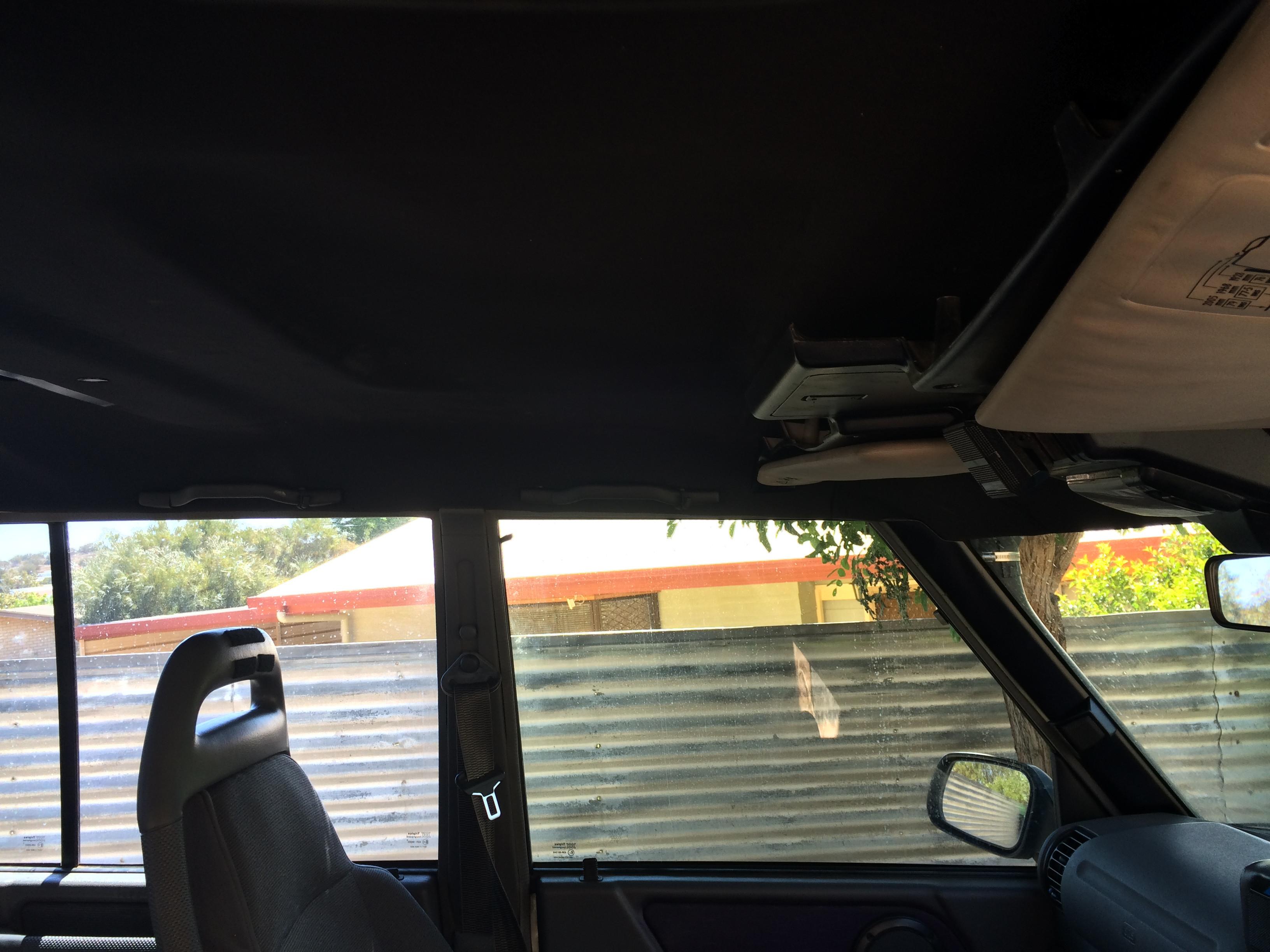 Thought i would share some pictures of my adventurous first time of doing a roof lining because i got sick of the yucky sag and dirty materiel of the factory one... so ordered foam backed material (3meters- only needed like 2.5 meters but got extra for "just in case reasons") at 62-63" wide.. (would have been better if it was about 65"+ but it was enough....