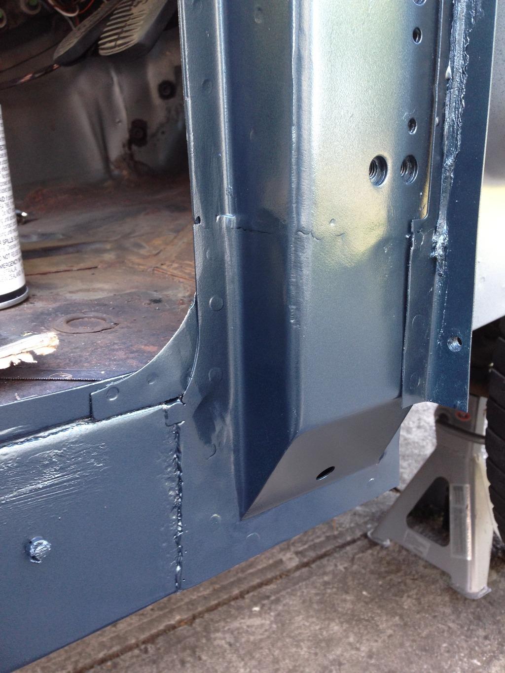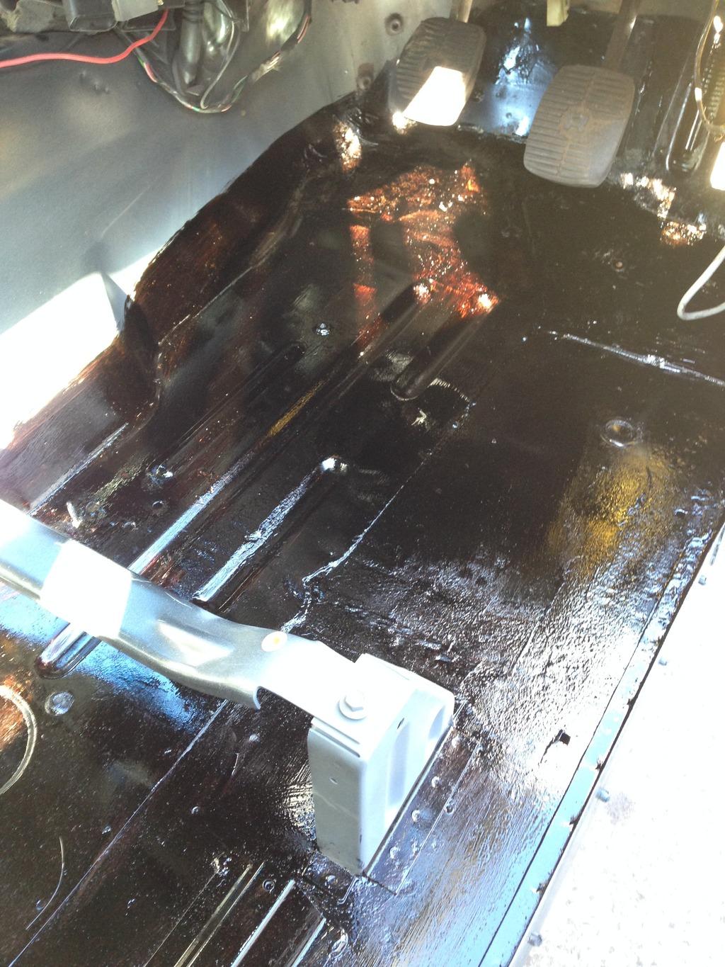 I used the time between paint coats to treat the rust in my footwells. I was going to stitch new steel in where it was rusted through but as they were only small holes and the rust wasn't too bedded in I just filled them with fibreglass. They were also primed and painted so that's another job ticked off the list.