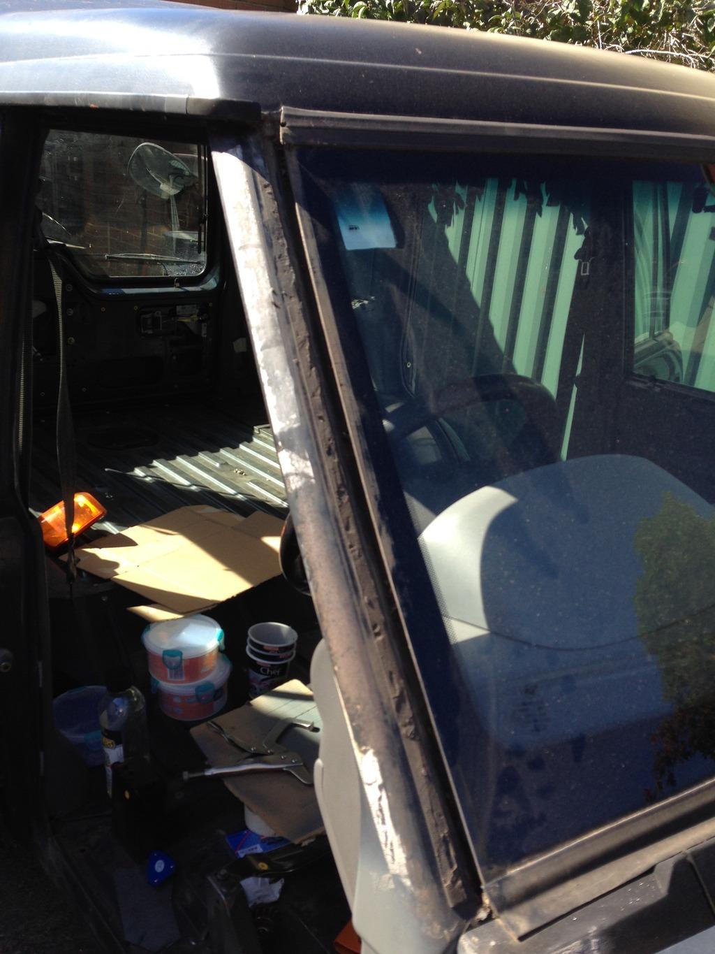 I cut 2mm steel sheet for the window frames using what I cut out as templates, there are awkward angles around the base of the windows so there was a lot of sparking and grinding to get it all to shape which left a pretty ugly result, not to mention a cheap as chips welder, not ideal for thin sheet work but got there in the end. Once it was filled and sanded you wouldn't know the difference.