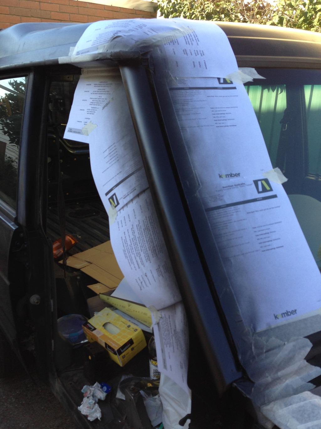 The top half of the a-pillar also got some attention as it was worse for wear. The flashing was peeling away from the windscreen frame and the paint was rusting through. Sanded, primed, painted. The flashing was cleaned up and straightened, then Sikaflex down the bead to set it back in place. At least that part of the car looks nice now.