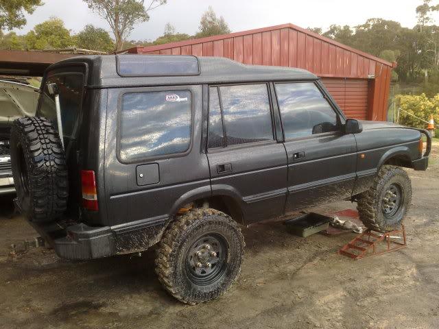 Gday all, hears my toy its a 97series 1 disco tdi300 manual with a 3inch lift, 32inch muddys (standard size coopers for road driving) tjm winch bar with 12000 pound winch and snorkel is about to go on same as uhf radio, havnt had her for long but i like her she seems to do pretty well in the bush although a diff locker or 2 and a roof rack future plans would be alright, cheers