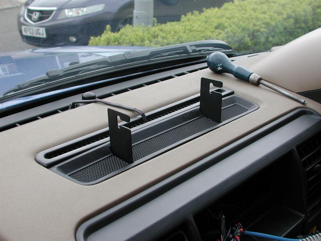 Well its in a D2, but same dash.....I found right in the centre at the top was the most useful place. The bolts go through under the mat for the bracket, bracket comes "through" the mat and the power wire comes up through the radio vent and the antenna cable round right at the bottom of the windscreen as theres a big gap there.