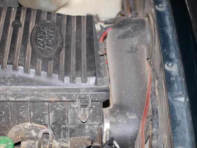 It depends on the model of safari snorkel to how it is mounted to the airbox. I have seen 3 different styles in the safari alone. There is the one that Loanrangie has mentioned that enters on the engine side of the airbox. The safari on Shamos D1 came into the back of the airbox near the windscreen washer resovoir like the first photo. While mine is different again coming into the panel side of the airbox and also moving the whole airbox towards the engine (second photo). The hole through the guard is inline with the circular inprint in the guard. While the new holes for the snorkels are all in different places as far as I know they all block off the original hole in the front allowing a second battery to fit infront of the airbox.