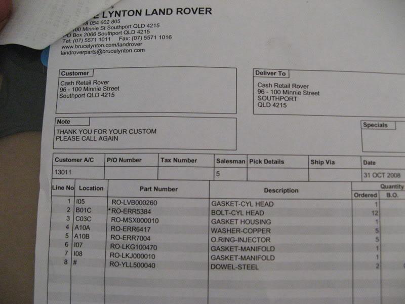 Does anyone have a parts list with part numbers for a head gasket change? would be good to look at costs of parts. might be worth putting in an order OS with our strong AU$