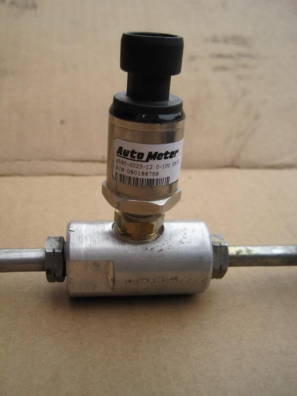 It is based on a full sweep electrical fuel pressure gauge (0-100 psi scale) kit from Autometer.