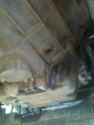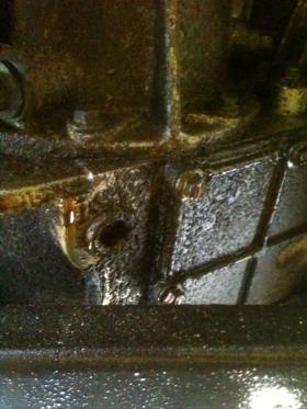 There are a couple of funny looking bolts on the bottom cover plate, they look like bolts with a nut screwed onto them. Must be a repair job, maybe from a broken off bolt. I'd say someone's been messing around down there so it wouldn't surprise me if the drain plug was wrong. lol.