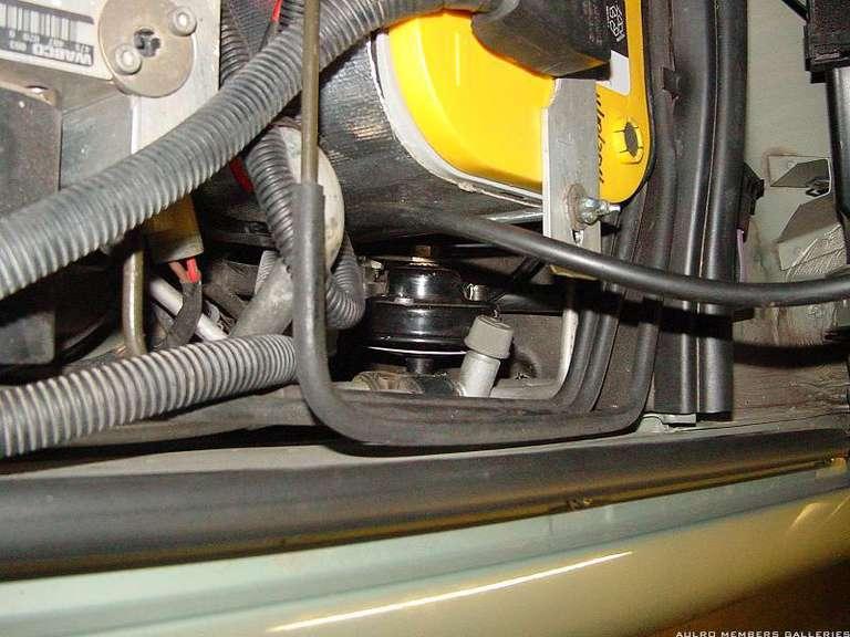 ... and a shot showing the alarm horn ... it's mounting bracket needs to be flattened then rebolted back to the tray ... this takes a little bit of tricky manouvering.