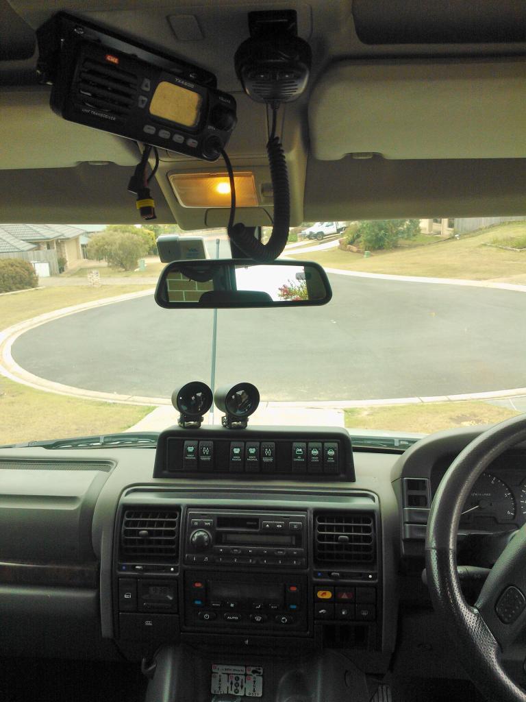 I have the GME 3520 remote head, have the base unit as per onebobs pics. The face fits up on the top consul on the far right in the smaller cutout perfectly (as above pic). Just double sided taped it in there, did the same with the base unit (just hit up a panel beater for some exterior grade tape for body mouldings). Have the mic fitted to the base, comes out a hole drilled just on the steering column side of the 1/4 turn screw for the panel. Pull the two lower switch blanks on the left of the switch panel on the instrument binacle. Screw the back side of the mic clip to the bar between the two switch holes, then fit the front. Make sure the top of the clip is just at the bottom edge of the top of the top hole so the mic clears the switch above.
