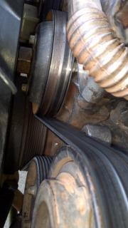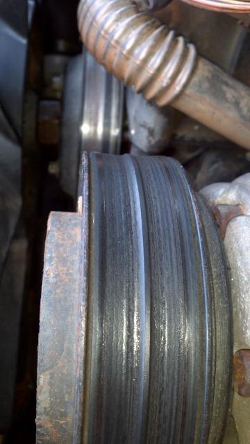 while i was changing the radiator figured id do a belt change anyways the old belt was still fairly good did have a grove in the middle of it. so i put the new belt on and it wore a groove into it strait away.