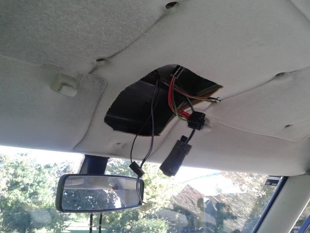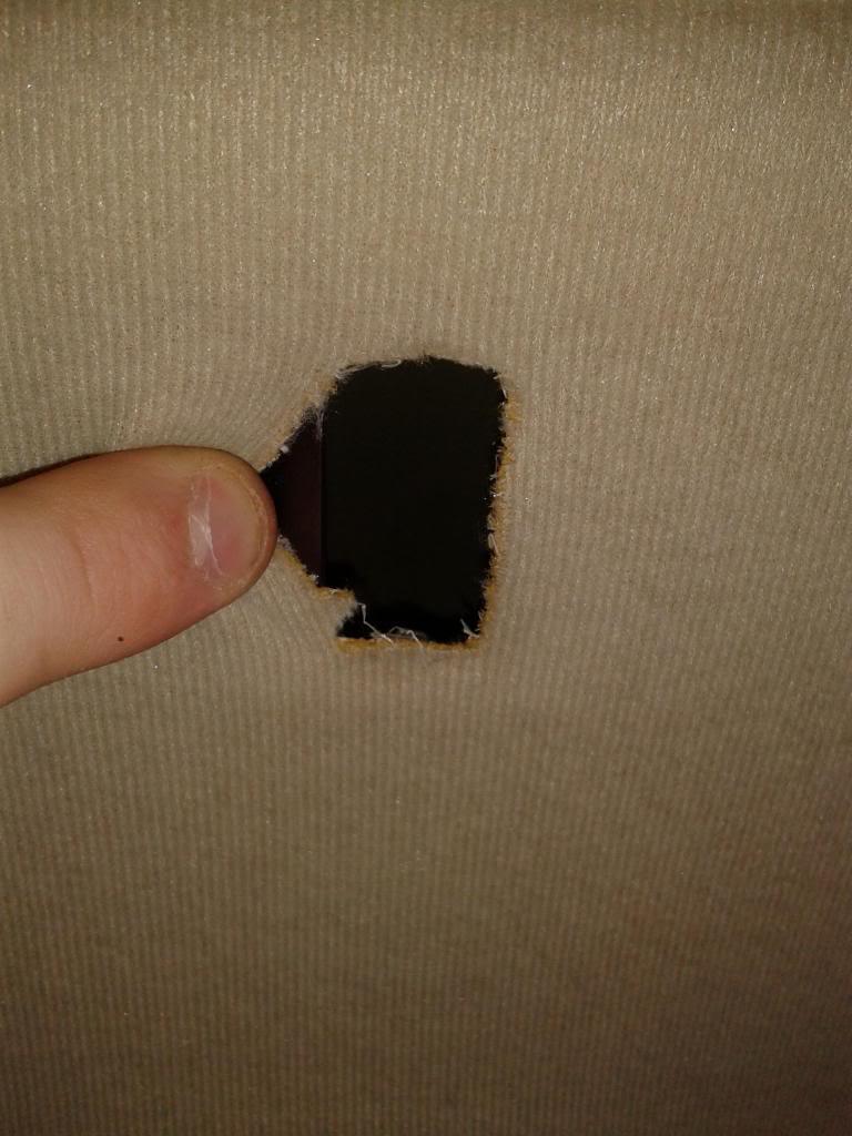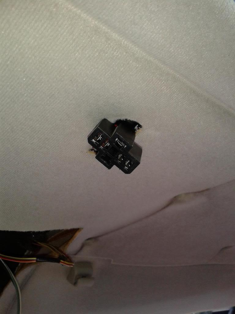 Step 3: Now the Sunroof switch wires need to move about 10cm towards the rear of the vehicle towards the metal frame that helps to locate the switch itself (more on this useless piece of metal later), so with some gentle prodding, fine the metal frame (Same size as the switch) and cut out the headlining from the inside ()