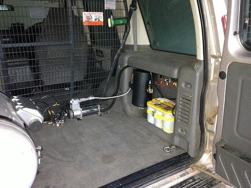 The factory air setup raises slightly while driving and lowers slightly when stopped. There is a further lower when to doors are opened. A bit fussy for my liking but there appears no SLABS control setting otherwise. On side slopes it also compensates for body roll and puts more air into the lower side airbag. There may also be some interaction whilst in low range at extremes of suspension travel, though not sure. The air lines are too small for dynamic changes while driving.