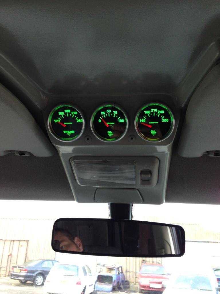Attached (I hope) is a piccie of a mudpod I purchased from LR Autos for my Disco 1. It's actually designed for a Disco 2 and fits in same place. I have installed VDO L to R, water temp gauge with sender in head near head bolts, volt meter, boost gauge and EGT gauge. I picked VDO cos reasonably priced and lights are green matching OEM. I have not decided if I will put another gauge or switches in blank spot. I will also be relocating my engine saver to top of mudpod to keep all gauges together.