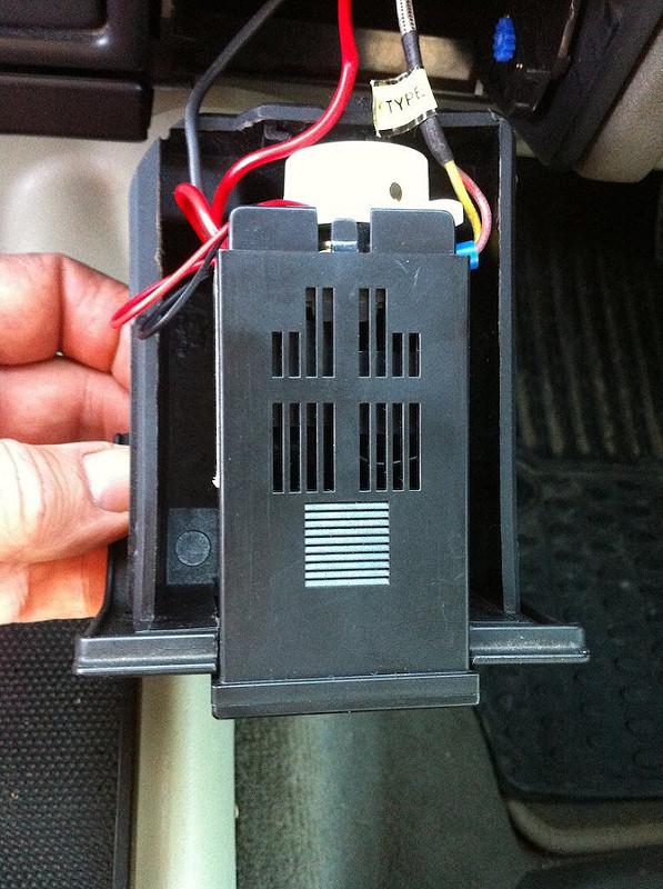 Step 3 - install alarm, controller in ashtray, and wire to a switched ignition outlet (from a spare outlet at bottom of fuse panel)