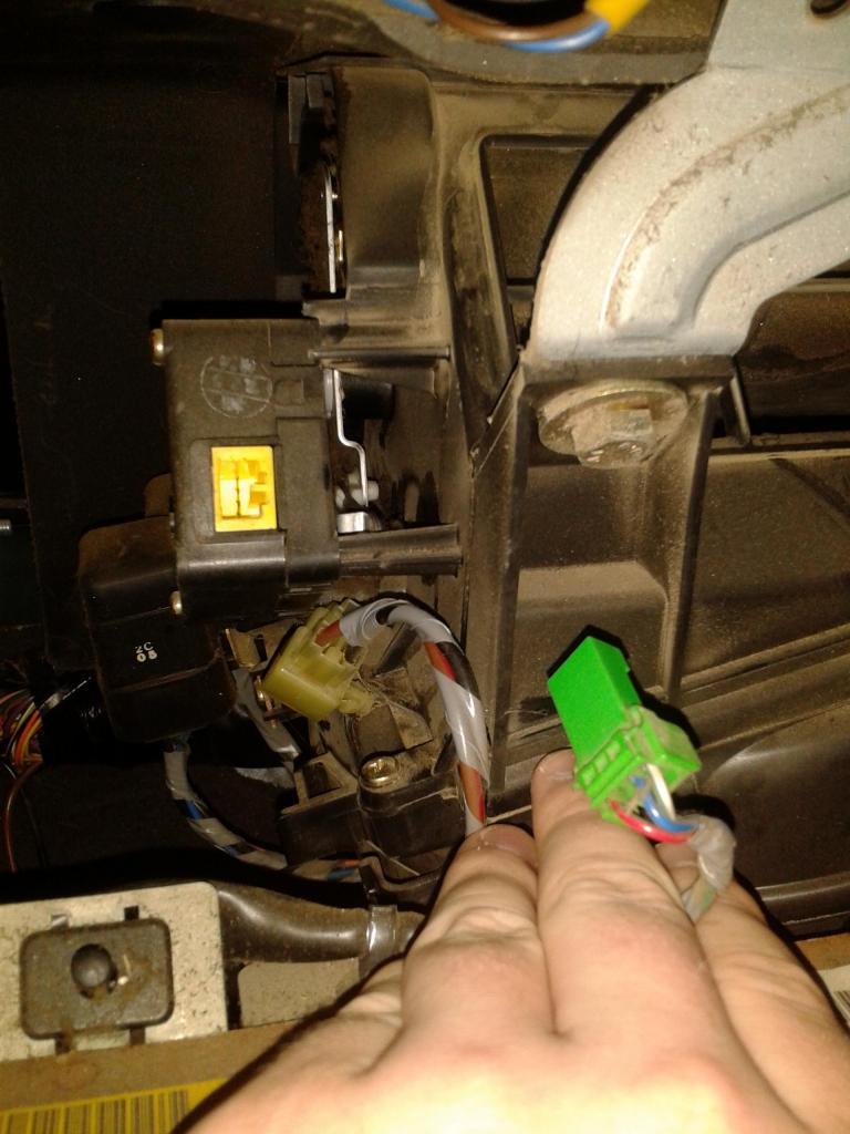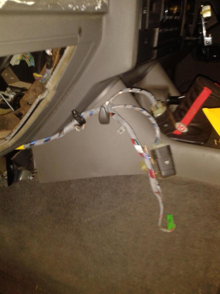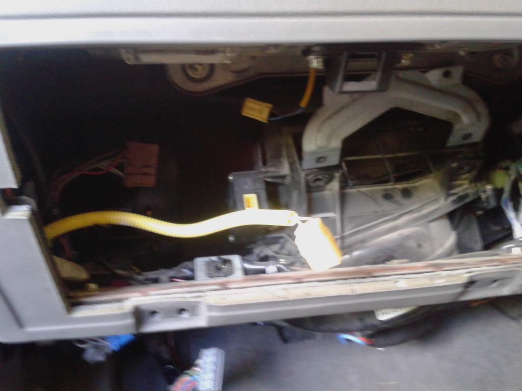 Remove the two connectors for glove box switch to give more room to get ECU's and frame out.