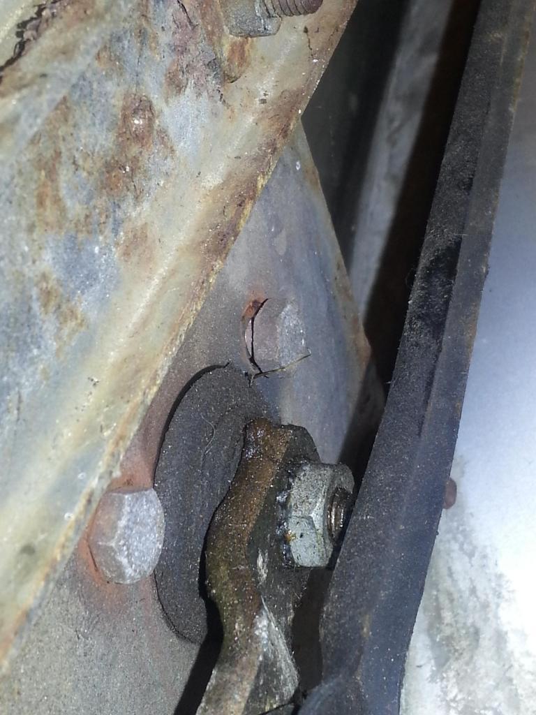 Next, onto the actual wiper clunks. Commonly caused by the three bolts that hold the wiper motor onto the plate being loose. I'll let Del's photo do the talking...