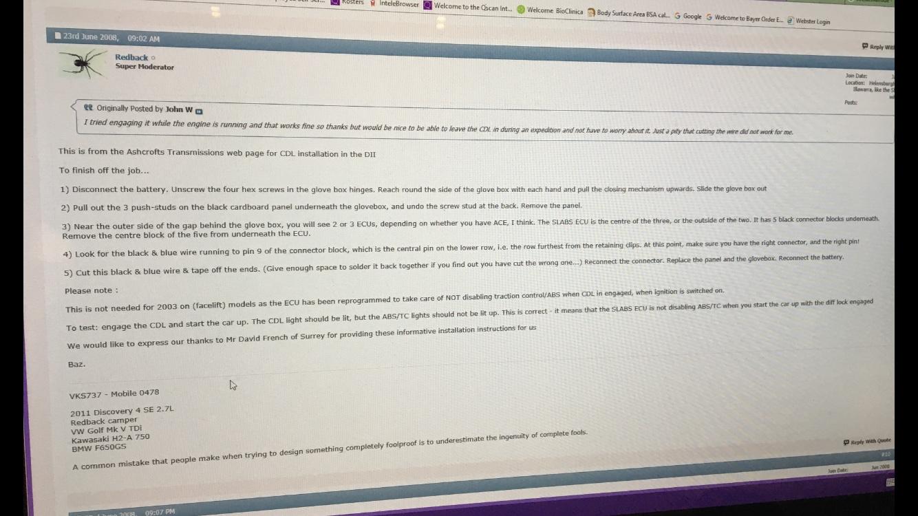 I used the below as my guide. (Screen shot of another’s guide). It was pretty straight forward. Installed a momentary switch under the drivers side dash.