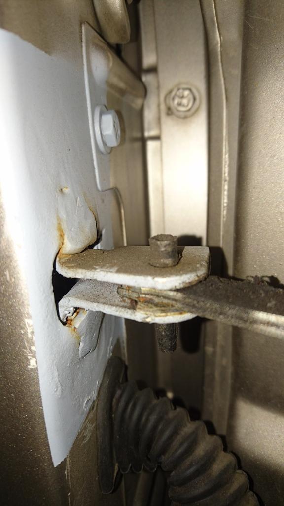Front drivers door, the catch / lever that stops the door flying open and bending the hinges. The part on the LH side of the picture below, the bit in the A piller is loose, very loose, like not connected to anything. How do I fix this, is it easily fixable or is this another one of those nightmare jobs.