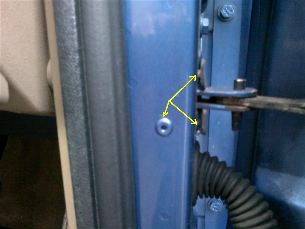 Of course it might be just as easy to take it to a welder, hold the door open and ask him to weld above it and hope it penetrates both whats inside and the frame of the car. If this worked it would take no time at all.