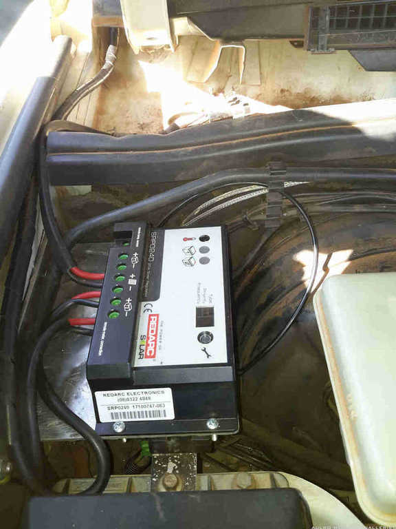 My panel is on the front of the roof rack and the wires run down the snorkel, across the engine bay, underneath and come up in the battery box under the front seat, where the regulator is next to the battery.